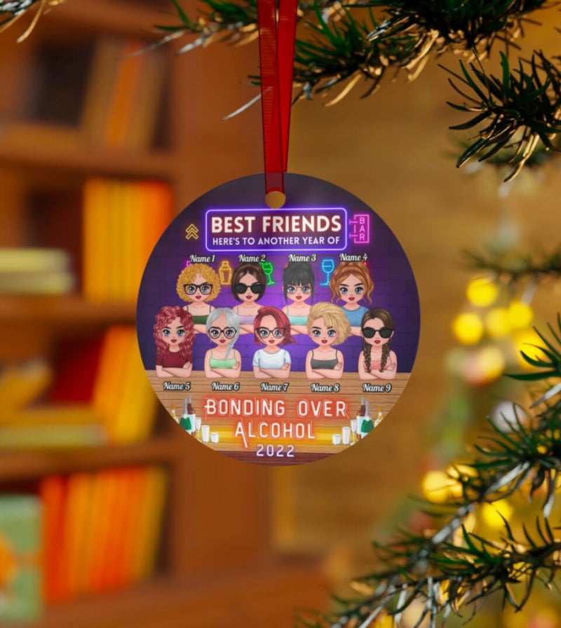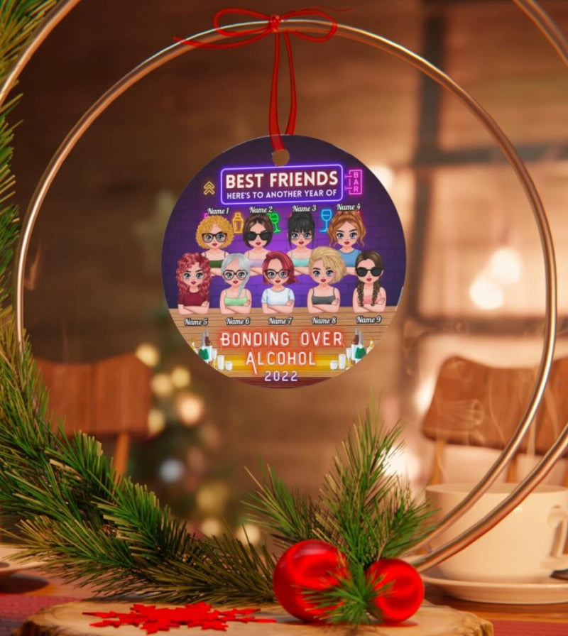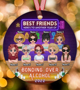 Here's To Another Year Of Bonding Over Alcohol Besties - Personalized Circle Metal Ornament Christmas Gift