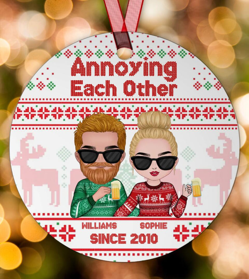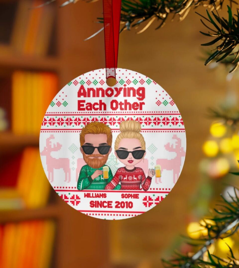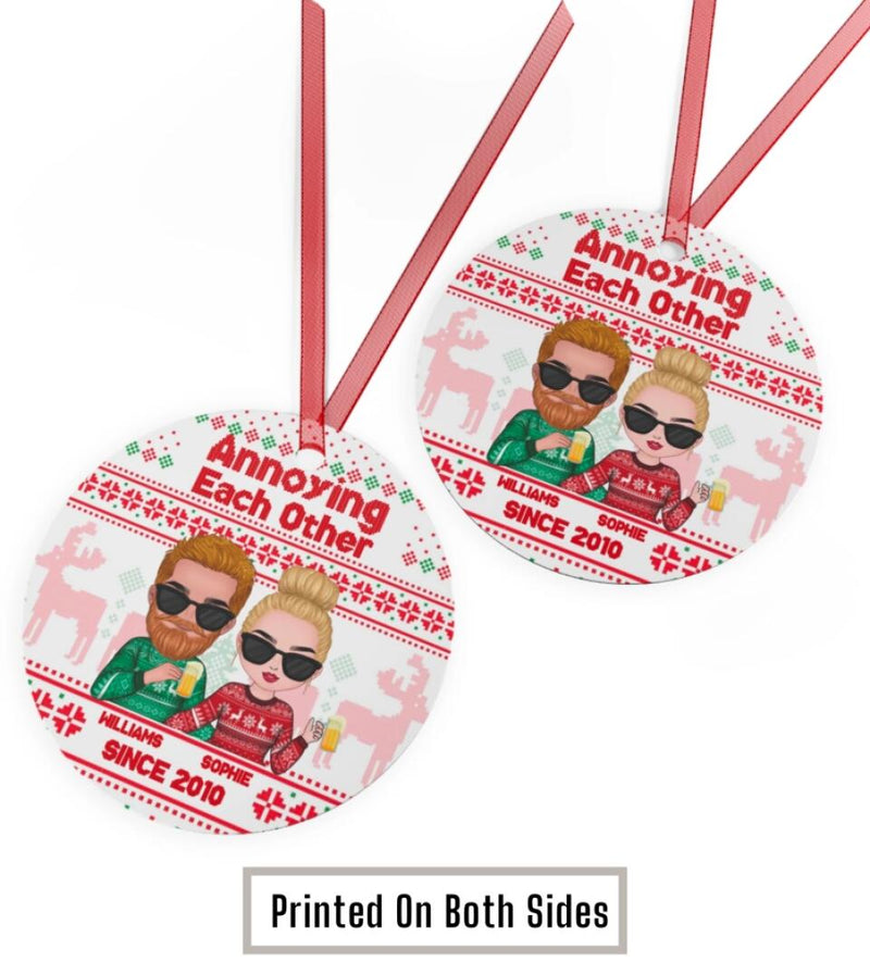 Annoying each other since - Personalized Circle Metal Ornament Couple Christmas Gift