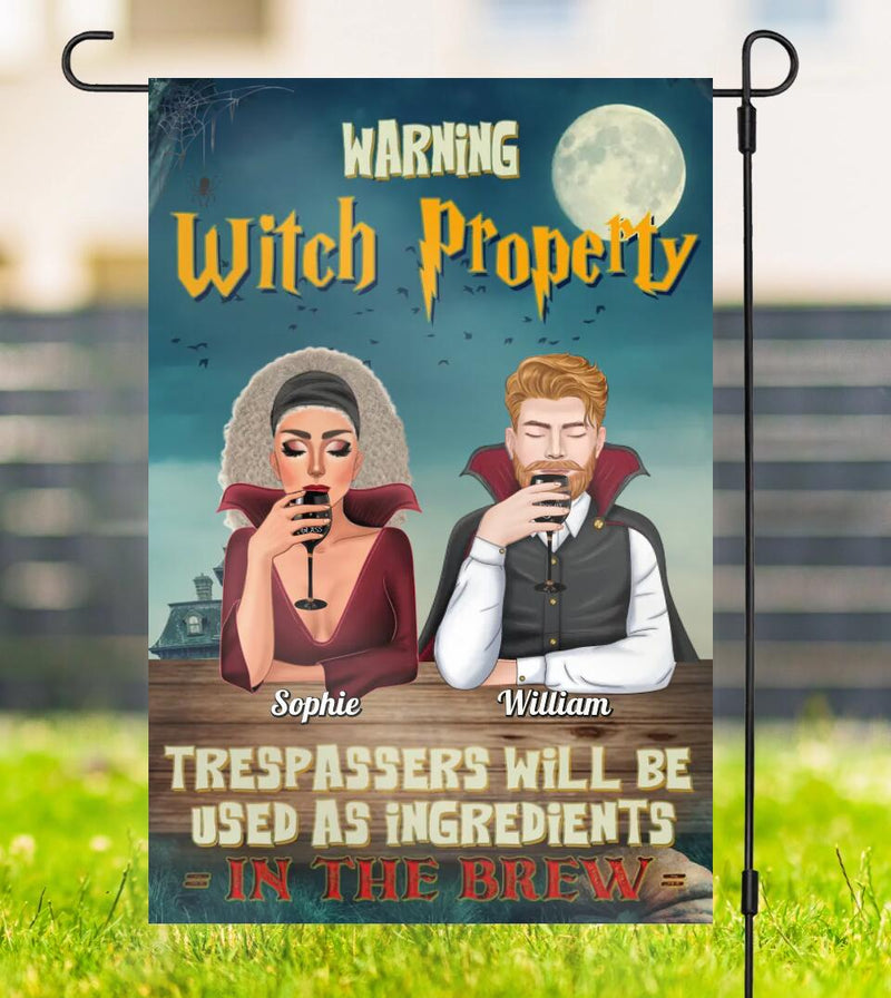 Warning Witch Property Trespassers Will Be Used As Ingredients, Halloween Couple Personalized Custom Garden Flag, Halloween Gift