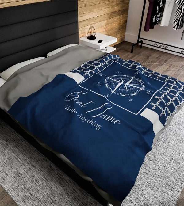 Custom Boat Name Compass Plush Blanket - Person...